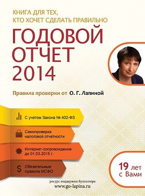 Уважаемые бухгалтера! Ваш подарок за подключение – долгожданное издание популярной книги О.Г. Лапиной «Годовой отчет 2014». Акция действует для компаний Москвы и области до 28 февраля 2015 г.