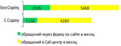 Статистика компании показывает, что, благодаря снижению нагрузки на Call-центр, процент успешного дозвона клиентами увеличился с 49% до 58%, что, безусловно, уменьшило число недовольных клиентов.