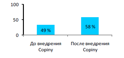 За полгода использования системы Copiny более половины клиентов компании (на октябрь 2011 года – более 6000 человек) проявили активность в сообществе, нашли ответы на свои вопросы и решили свои проблемы.